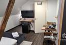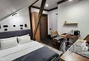 Номера категории люкс отличаются от других наличием второй комнаты, где организована гостиная зона с диваном и рабочее пространство с письменным столом.