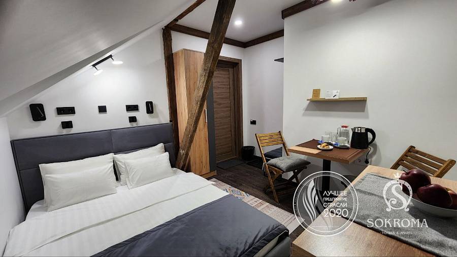 Гостиница «Sokroma Пик-Шале» – это 22 номера для комфортного проживания от 1 до 3 человек. Гости могут выбрать стандартный двухместный номер с одной большой или двумя раздельными кроватями, улучшенный номер для двоих или трехместный номер категории люкс. Окна номеров выходят во двор или на улицу. Каждый номер оснащен отдельным санузлом с душем, телевизором с цифровыми каналами, беспроводной интернет, мини-холодильником и журнальным столиком. При въезде гостям предоставляется постельное белье, комплекты полотенец и туалетно-гигиенические принадлежности.